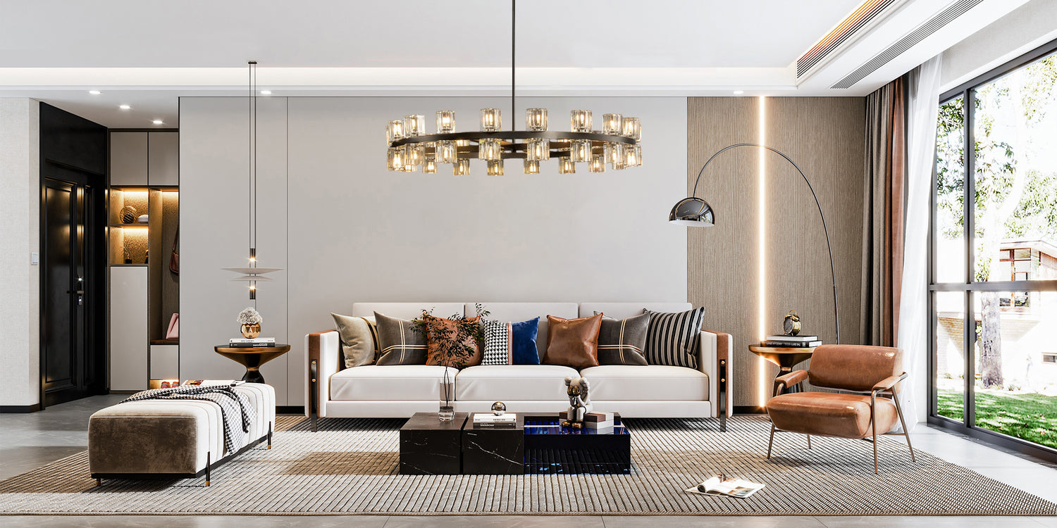 The chandeliers, inspired by French antique designs, feature thousands of faceted, hand-wrapped smoked glass beads encasing a steel frame. They form a floating sphere suspended by steel cables.
