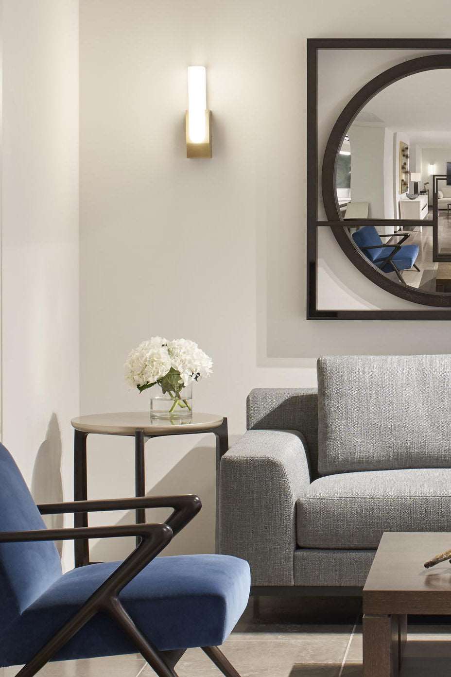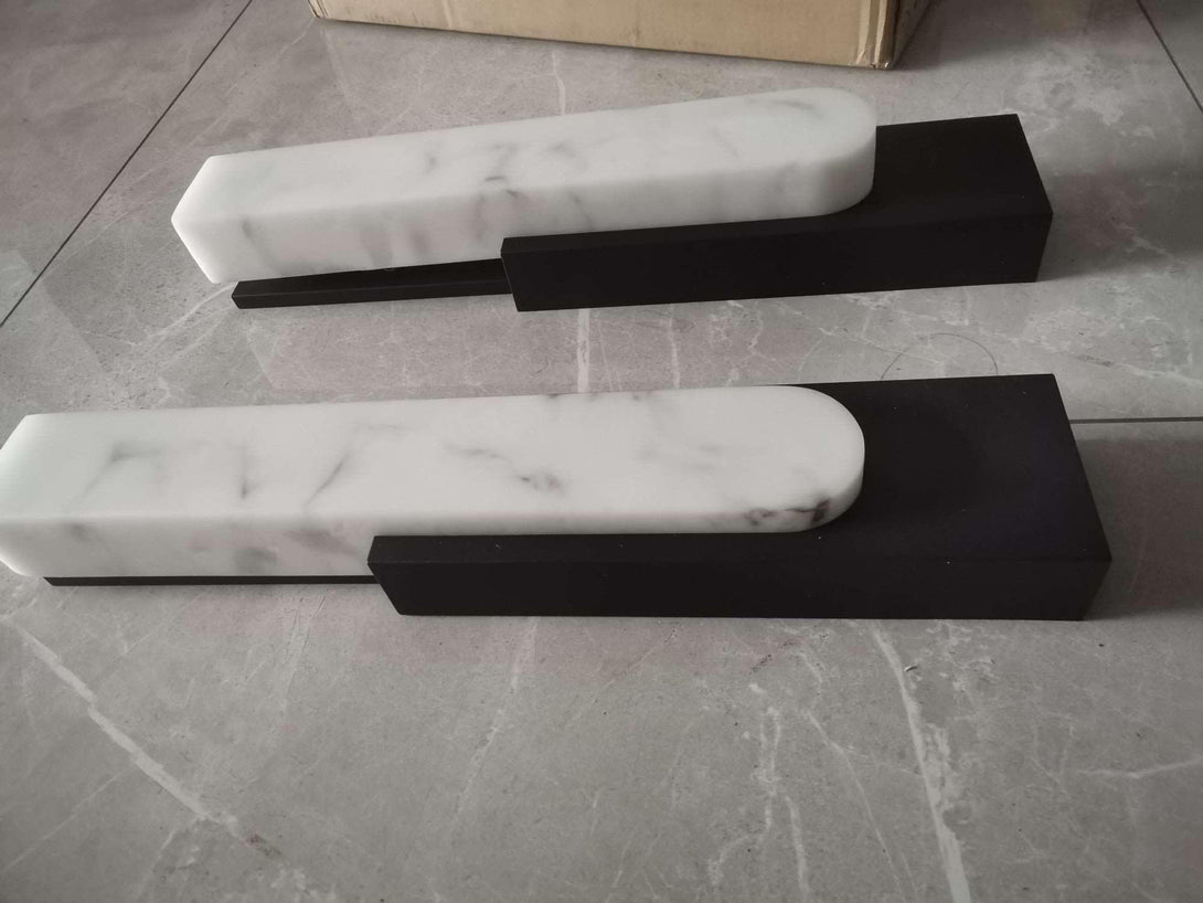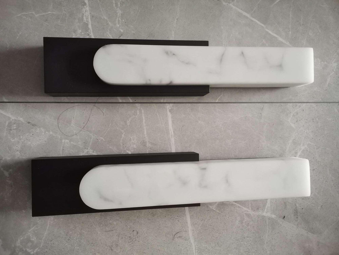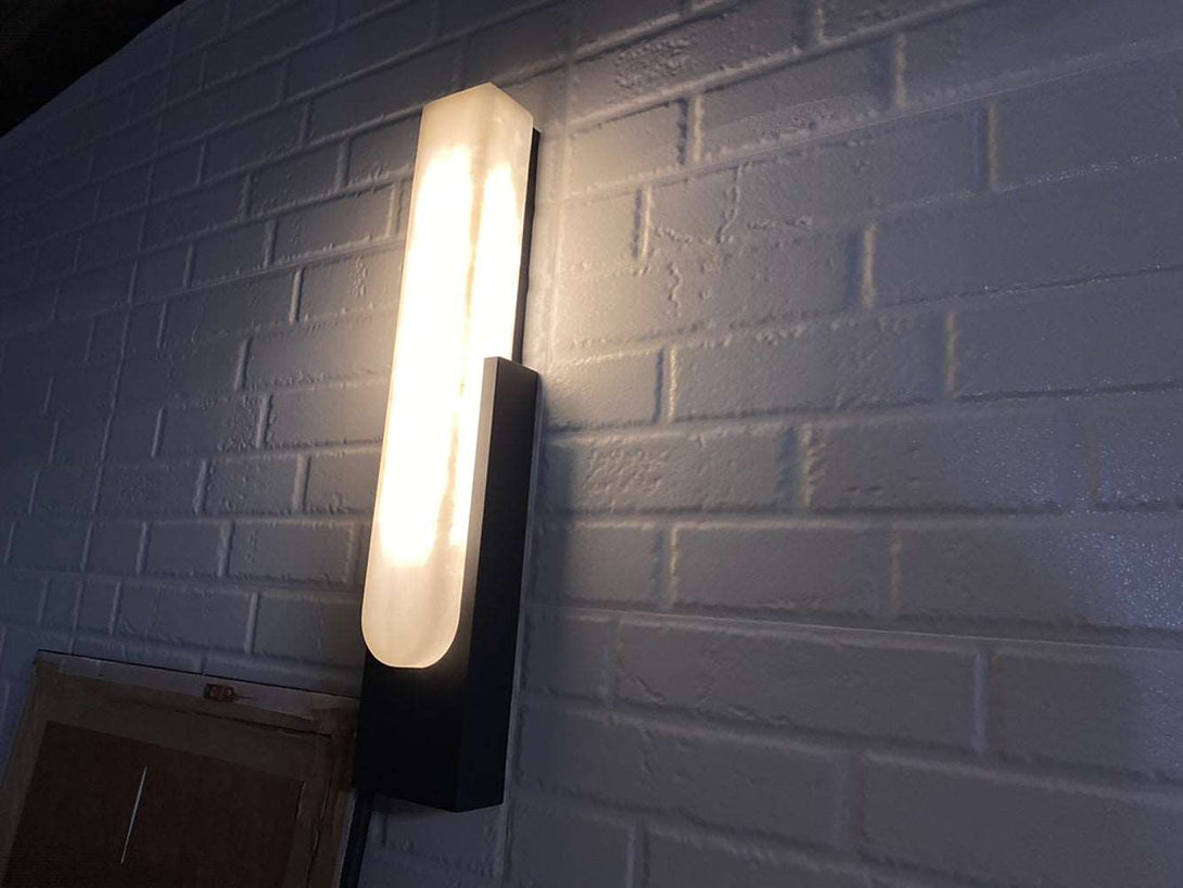 This sublimely modern light marries the purity of the metal base and the warmth of alabaster, a rare stone that makes each Agatha sconce unique. When illuminated, its inherent natural translucence comes alive, revealing veins distinct to each light.