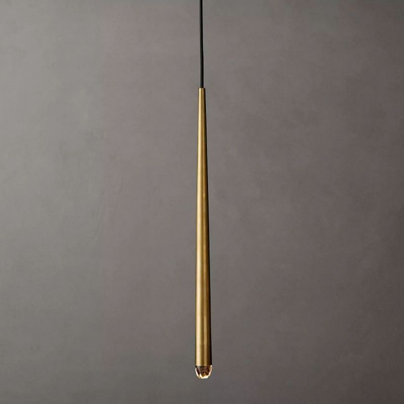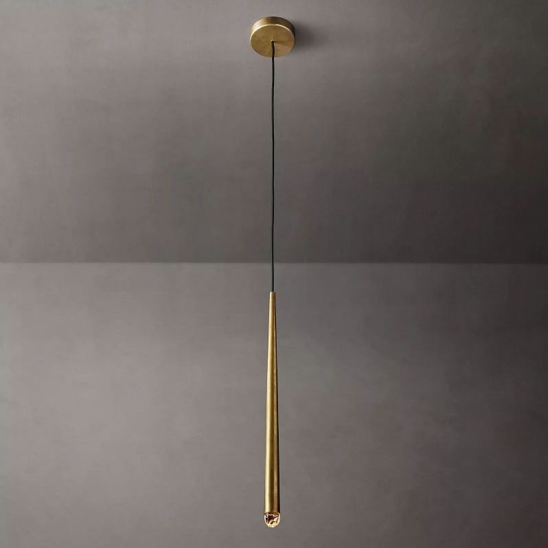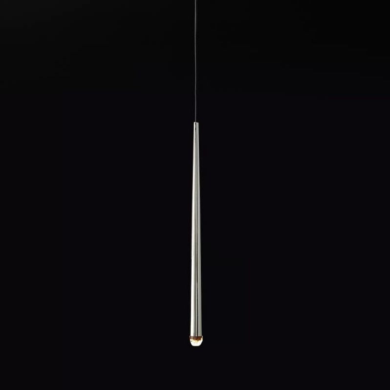 The main feature of the collection is a cluster of solid brass in the form of a suspension on a thin black cord. Recessed LEDs at the top of the faceted glass provide a warm light.