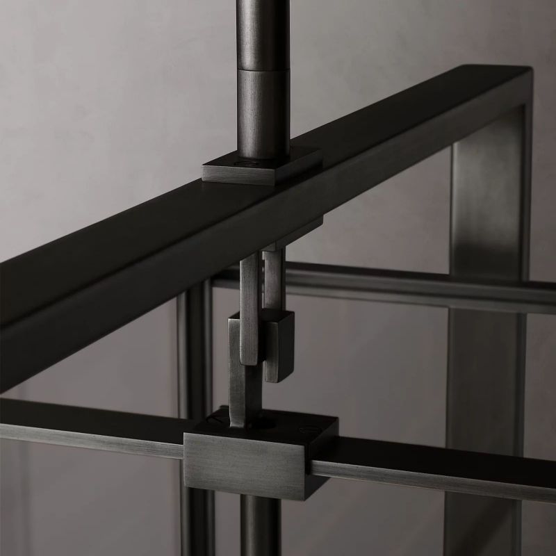 Inspired by the international style of glass and steel architecture, the collection's strong linear forms transcend utilitarianism with elegant proportions and a sense of weightlessness, offering a new modern interpretation of the classic lantern that appears to have glass volumes that seem to float within a ventilated metal frame.