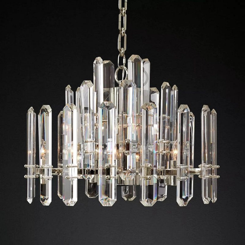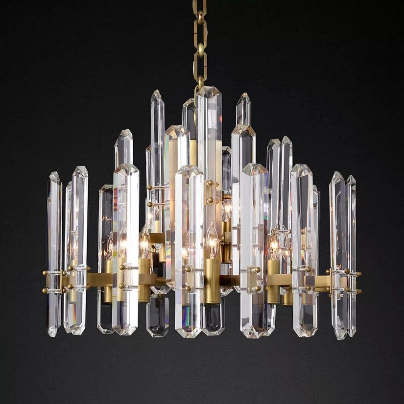 In this collection, the designer has paired ultra-clear glass with a solid brass frame. The crystal refracts light inward and outward, making your living room or dinning room even more gorgeous and dynamic.