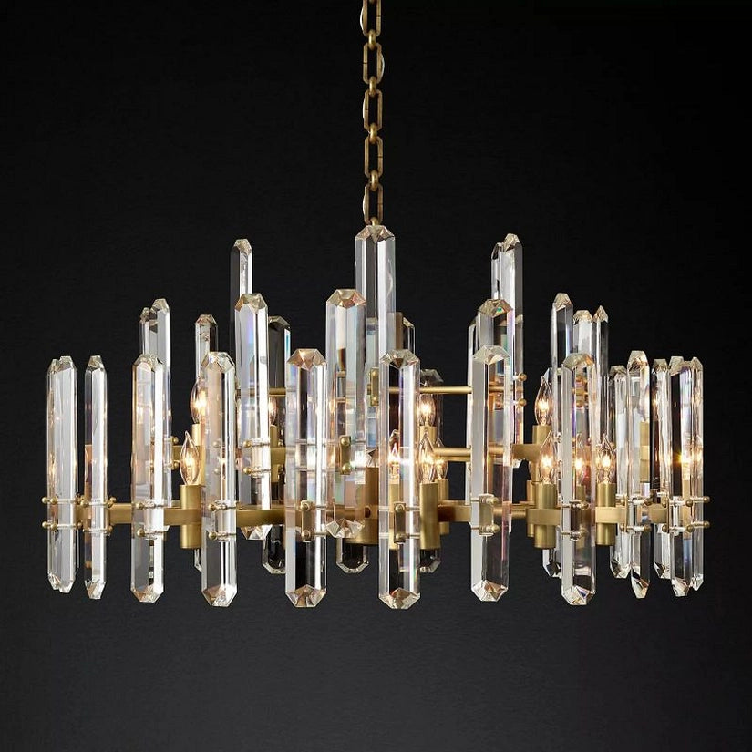 In this collection, the designer has paired ultra-clear glass with a solid brass frame. The crystal refracts light inward and outward, making your living room or dining room even more gorgeous and dynamic.