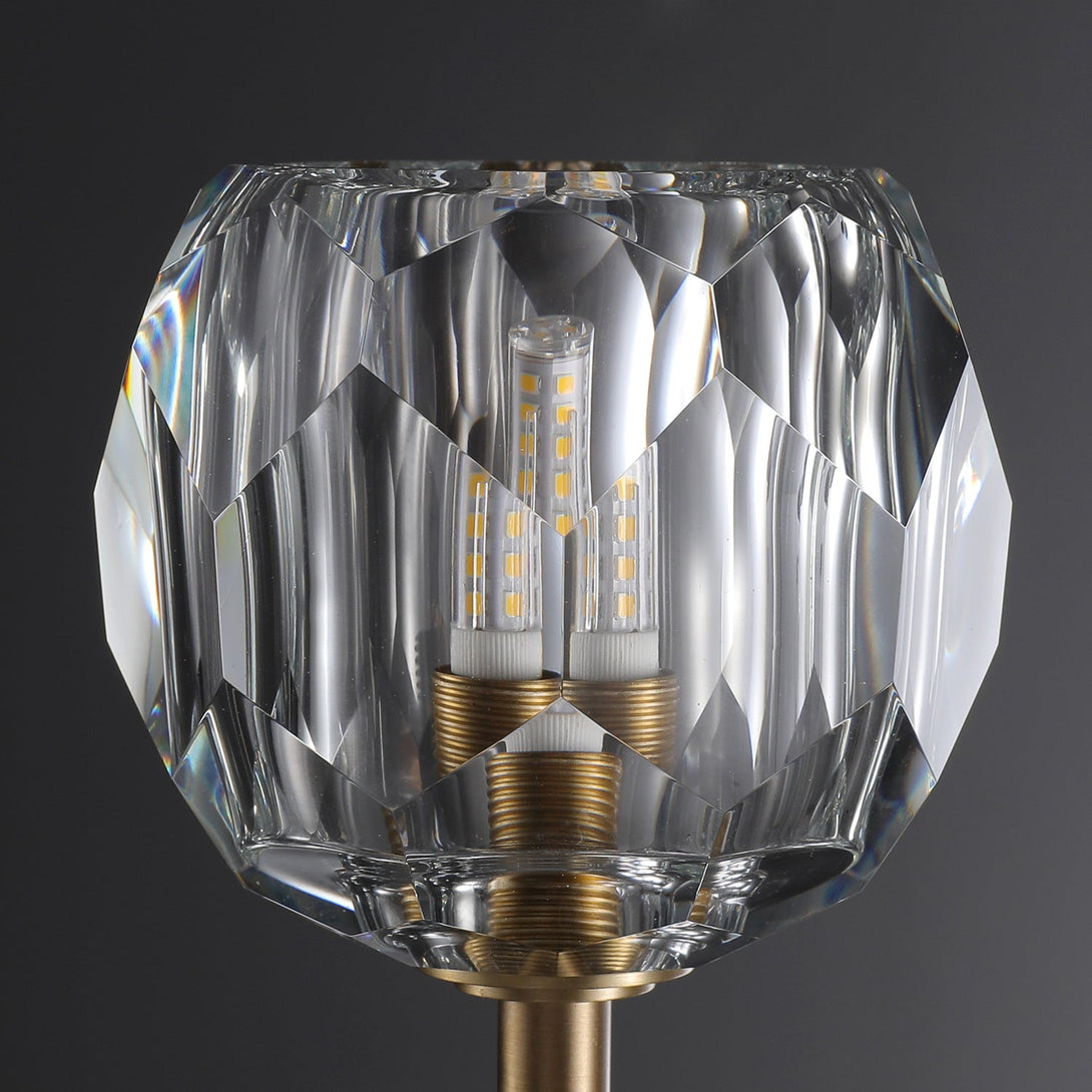 The collection is crafted of solid brass and crystal glass, for luxe materials and superior craftsmanship, each finely the faceted sphere is ground and polished by hand to reflect and refract the light.