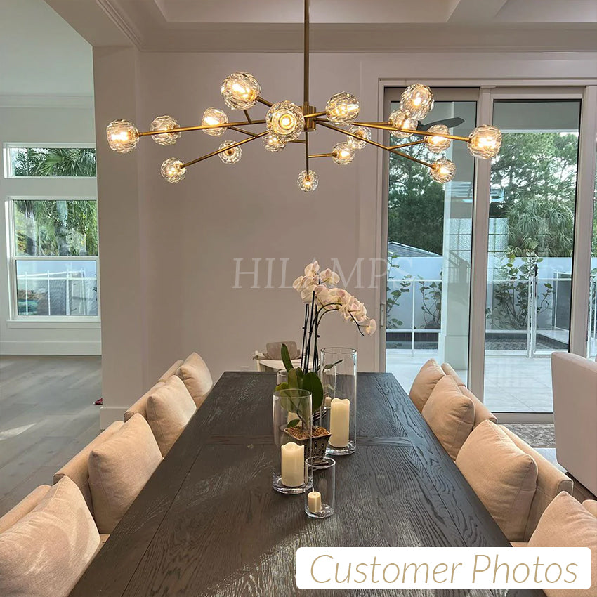 The collection is crafted of solid brass and crystal glass, for luxe materials and superior craftsmanship, each finely the faceted sphere is ground and polished by hand to reflect and refract the light.