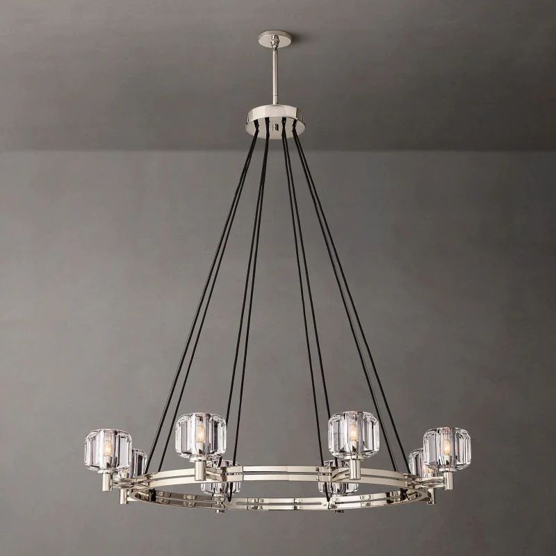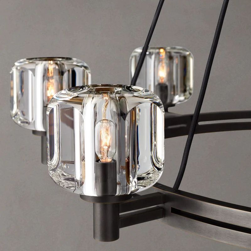 The Demaret collection captures a sense of understated elegance. Set in a distinctive double-metal frame, its curved surfaces are crafted from cast K-9 crystal and polished by hand to beautifully reflect and refract the light. The soft, rounded forms are cut with smooth oval facets on four sides to create a clear view through the crystal, the subtle embellishment lending relaxed refinement.