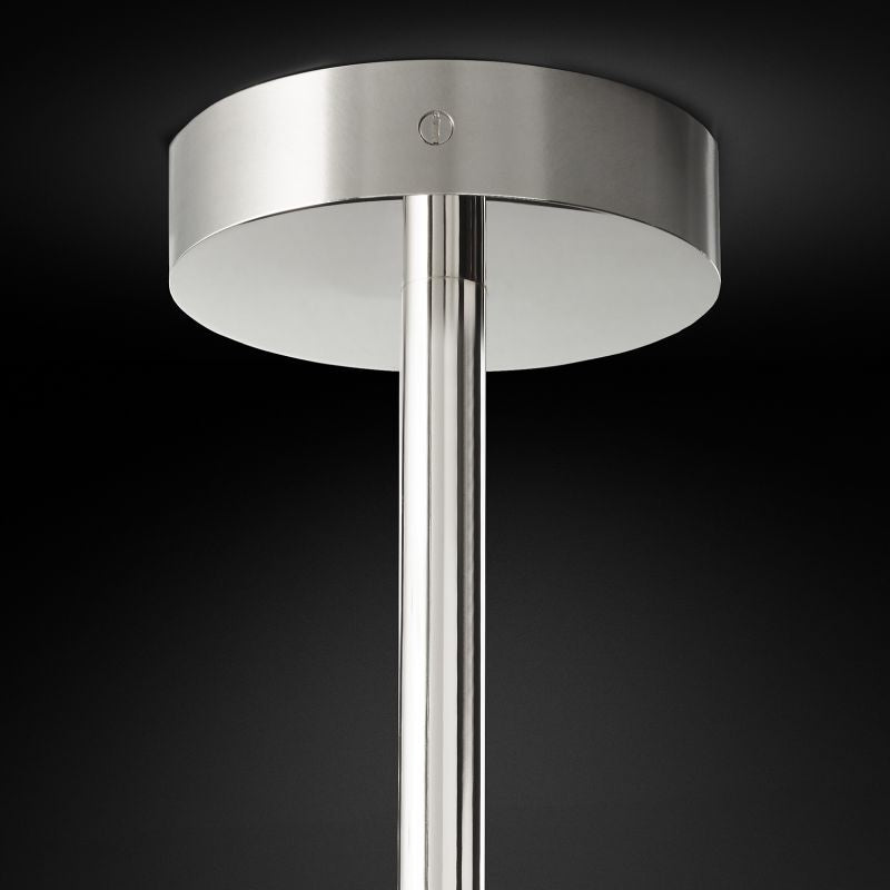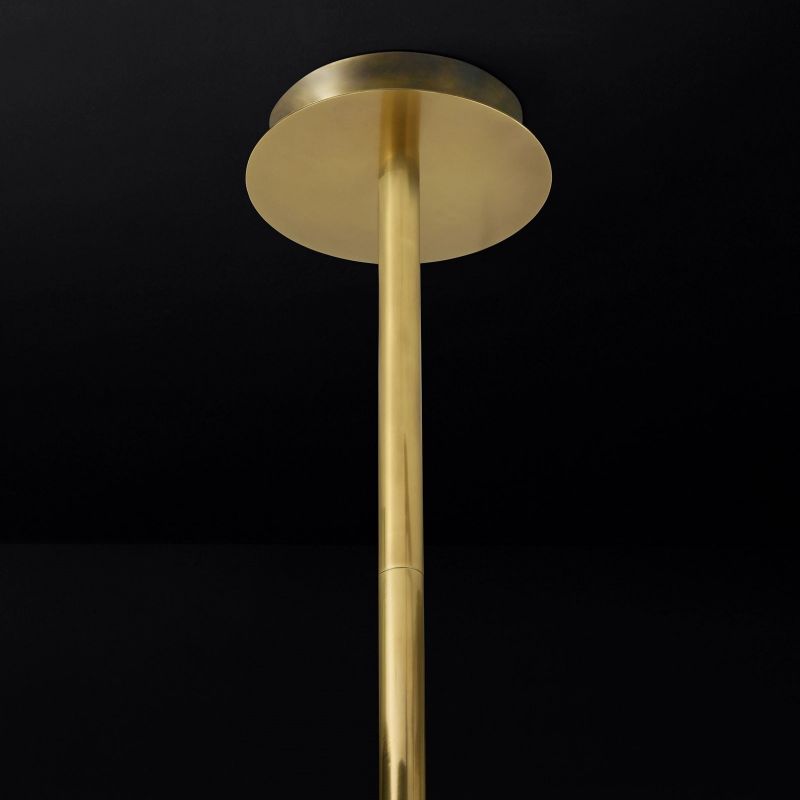 Delicate, handblown glass globes float at the ends of solid brass rods in our collection. Crafted in Poland by master glassmakers, each fixture conveys fluidity and motion yet is anchored in the pure modern architecture of its form.