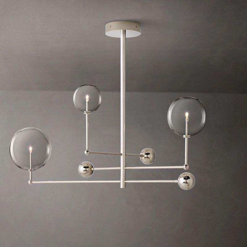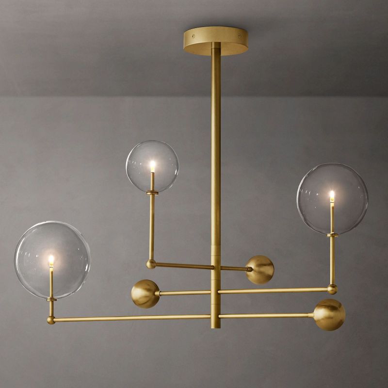 Glass Globe Mobile Three-Arm Chandelier 46"