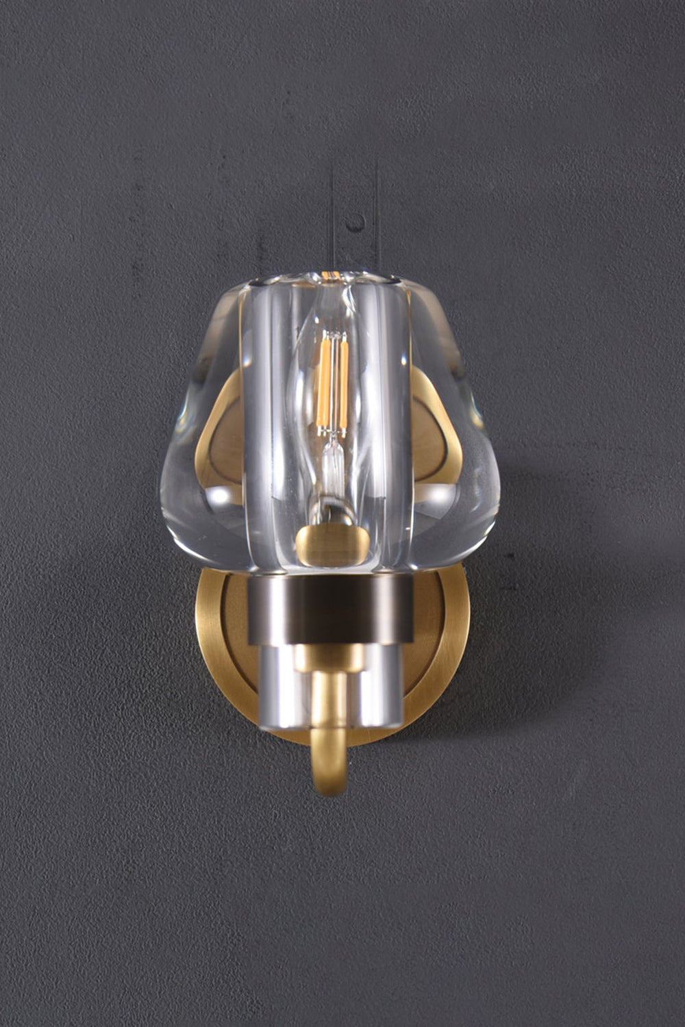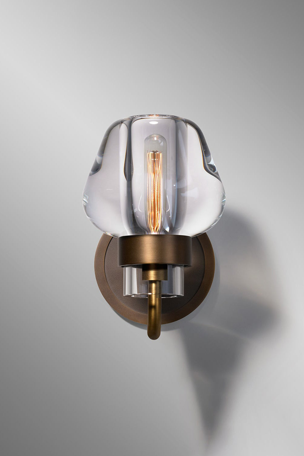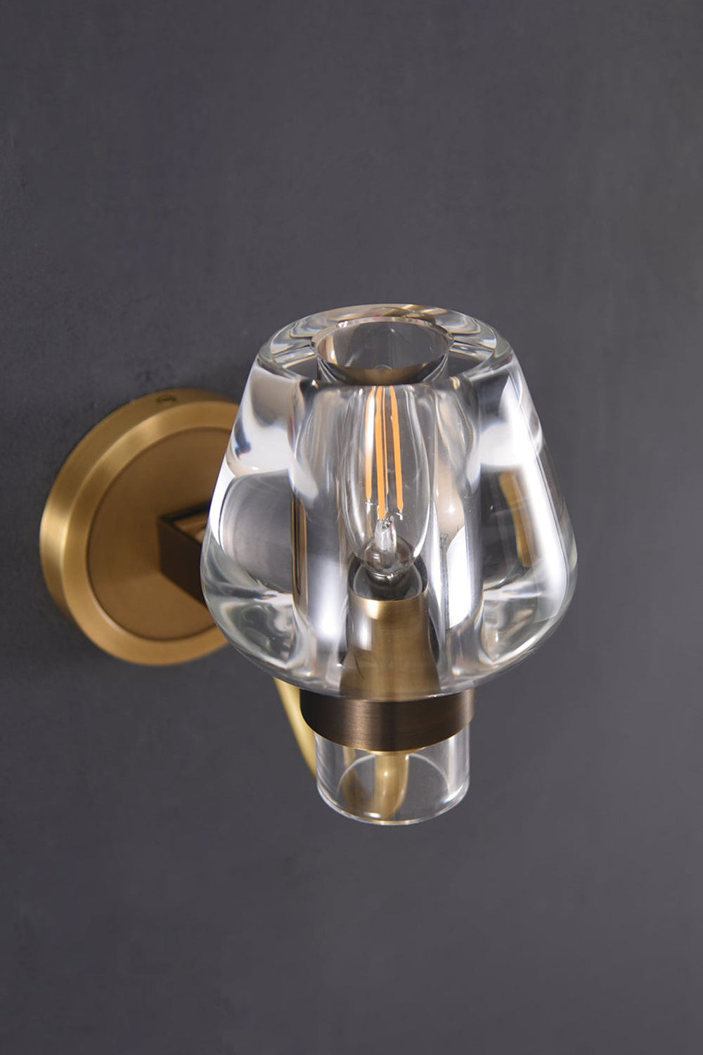 The Montalembert Luxe Sconce is crafted from solid brass by skilled artisans. Each component undergoes meticulous hand polishing and painting. The lead crystal shade is hand-carved and refined to perfection.