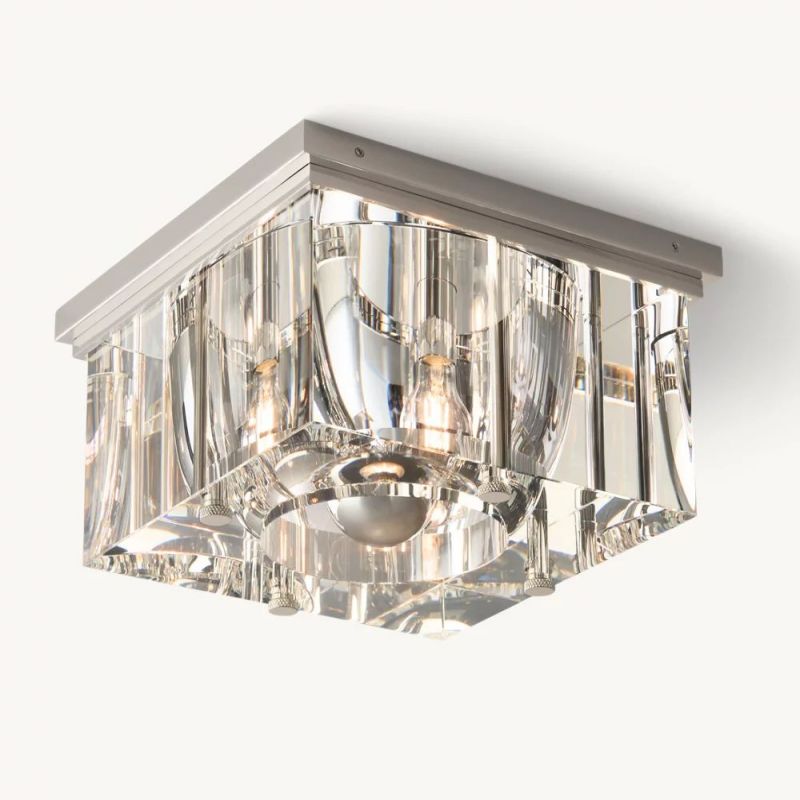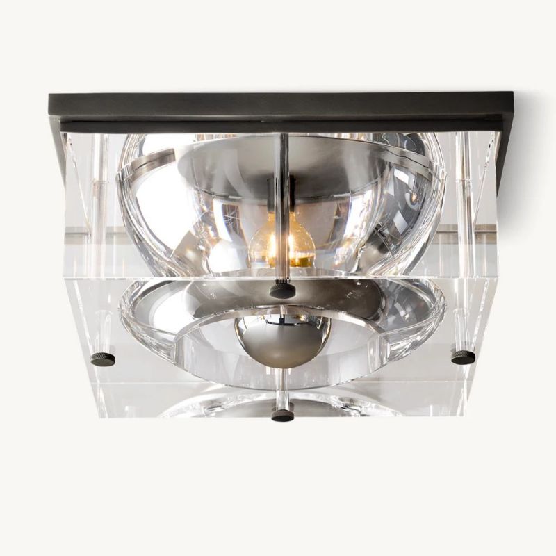 In Savile collection, we have created a masterful study of solid and void. A monumental block of crystal is carved with a concave channel to hold an Edison bulb and set in a frame of solid brass. The crystal reveals its solidity when illuminated, refracting and reflecting the bulb within, but takes on a weightless transparency when dark.