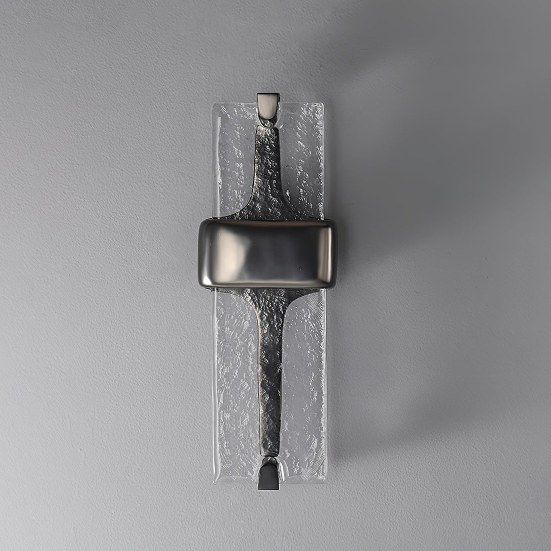 This modern take on a traditional torch, the wall lamp beautifully combines the boldness of black with the luminous clarity of glass. Surrounded by its sleek frame, the handcrafted glass is molded with elegant and gentle waves, providing a delicate touch to its cozy illumination. Discreetly embedded within the glass, the integrated LED emits a tranquil and welcoming radiance that bounces off the black surface.